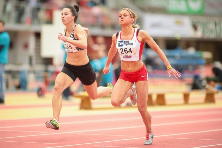 リンツ オーストリア 2 月 2 日ロロ ジョーンズ 米国 オーストリアのリンツで 12 年 2 月 2 日に女性の 60 の M のハードルのイベントを勝ちます の写真素材 画像素材 Image